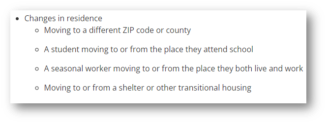 Here are some examples of how a change in residence allows you to enroll in health insurance mid-year: