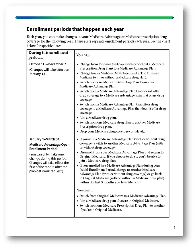 Additionally, there is the Open Enrollment Period where you can change from one advantage plan to a different one. This runs from January 1st through March 31st.