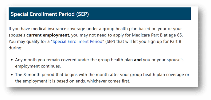 - The most common Special Enrollment Period – Turning 65, enrolled in Part B Recently, moved to Nevada recently, or qualifying through the Low-Income Subsidy.