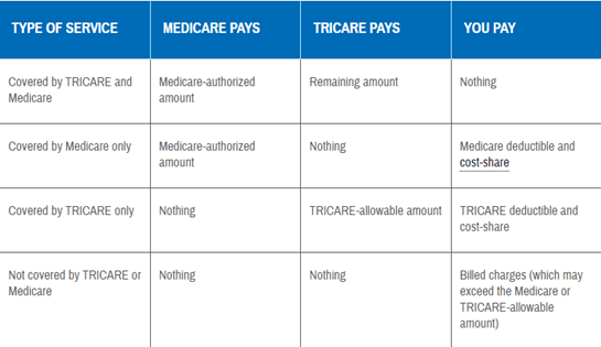 TRICARE for Life works similarly to a Medicare Supplement policy. When a TFL beneficiary seeks medical care, Medicare is primary, and Tricare is secondary. There is little to no out of pocket expenses for someone with TFL.